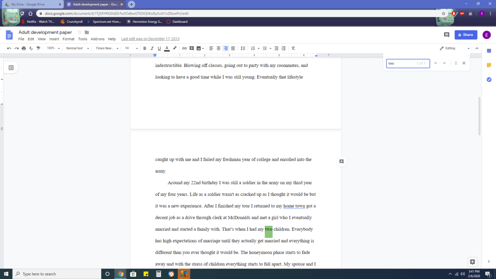 As you can see the search command will find those words and point them out to you to make your search easier. This also works on any Microsoft word application as well if you are trying to type a paper or essay for a presentation. Like below.